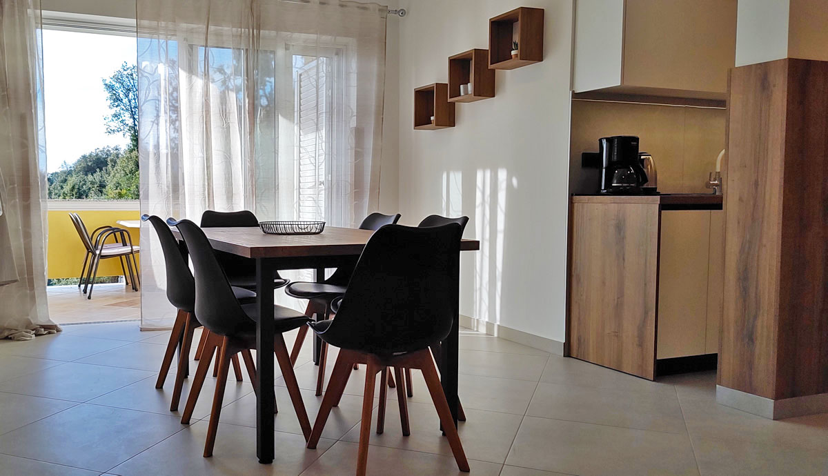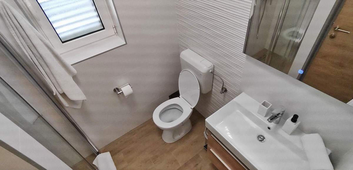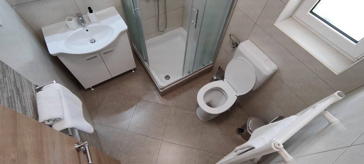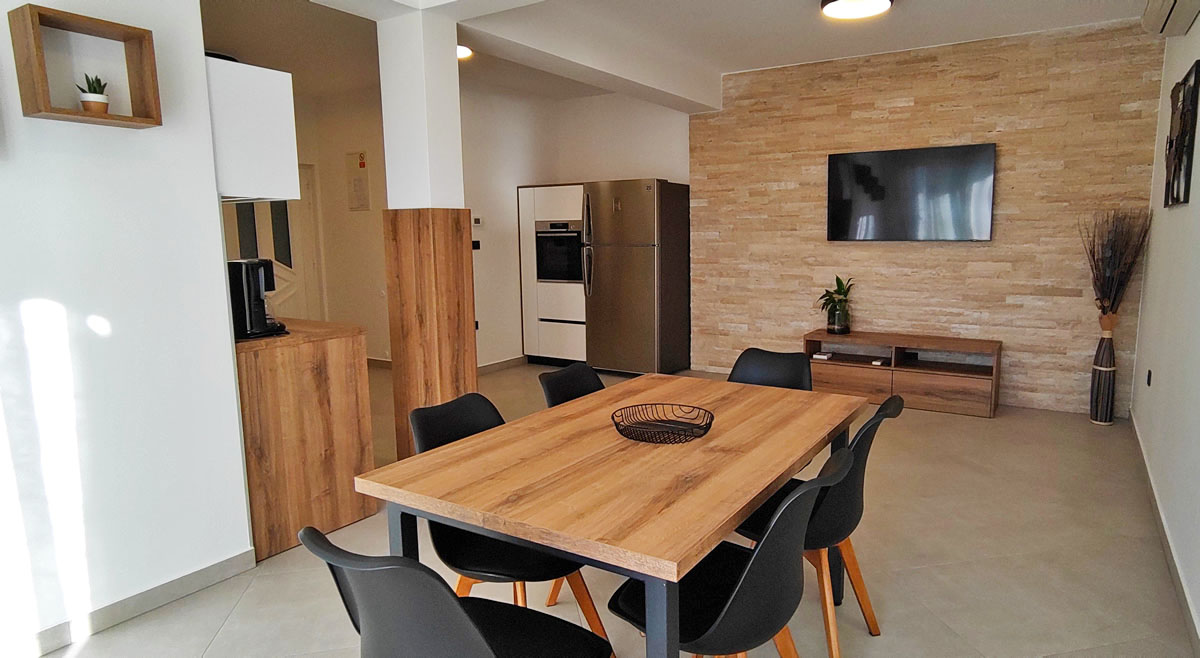 80m2, 2 spavaće sobe, dnevni boravak sa sofom za 2 osobe, kuhinja, 2 kupaone, 2 balkona s pogledom na more